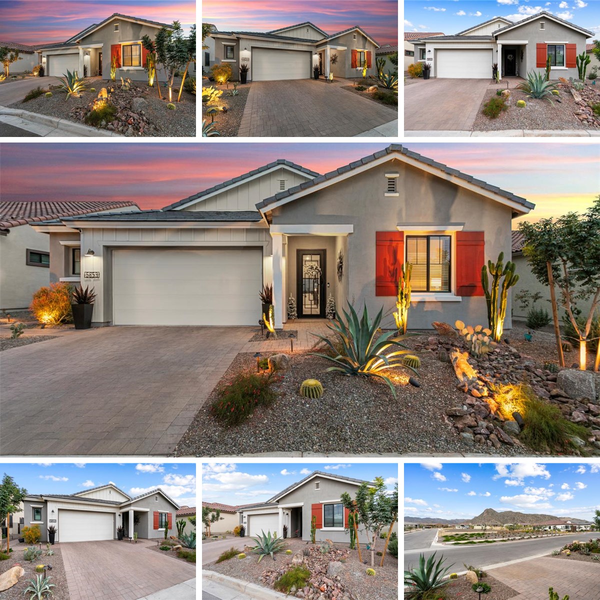 A Designer Masterpiece Framed by Fairways & Peaks. Step into a lifestyle of unparalleled beauty in this professionally designed residence, perfectly situated on a premium lot that is virtually surrounded by the lush fairways of the Victory at Verrado golf course. The home's unique positioning offers the best of both worlds: from the front, enjoy the majestic silhouettes of the White Tank Mountains and the pristine greenery of Annika Park. The interior is a study in designer elegance, featuring high-end finishes and a seamless flow for entertaining. The experience culminates in the backyard—a private resort oasis designed to capture the morning sun on the fairway.